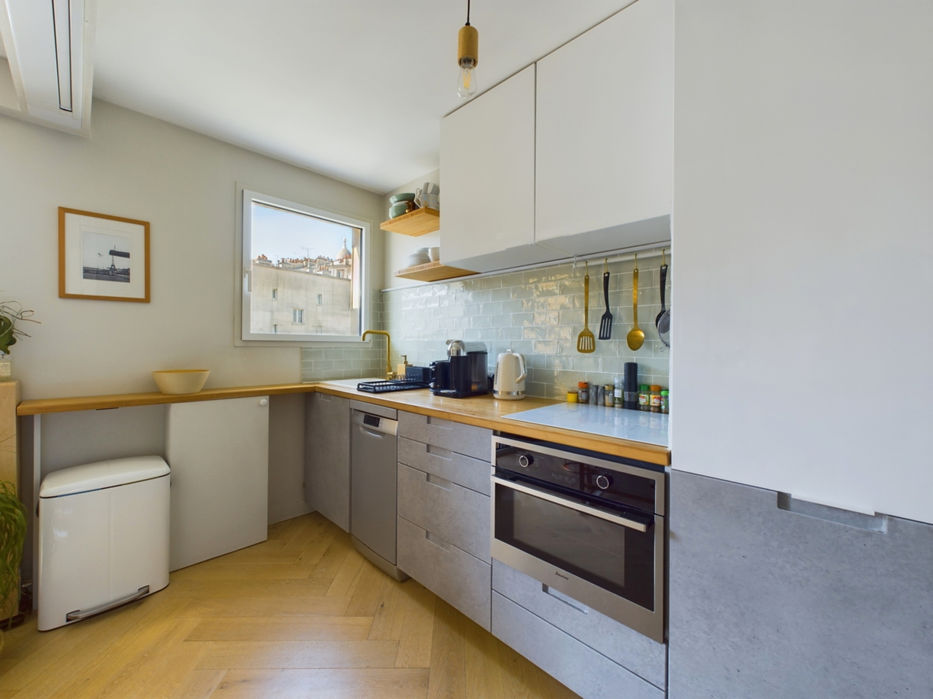 Paris 18 - rue Marcadet / rue Eugène Sue. Situé à 3 minutes à pied de la mairie du 18ème et du métro Jules Joffrin, dans une copropriété récente très bien tenue avec gardien. Très beau 3 pièces, au 7ème étage avec ascenseur, ayant une très belle vue sur le sacré-coeur. Ce bien est composé d'une belle pièce de vie avec cuisine américaine aménagée et équipée, deux chambres, une salle de bains, des wc indépendants. Deux balcons et une cave complètent le bien. Coup de coeur.